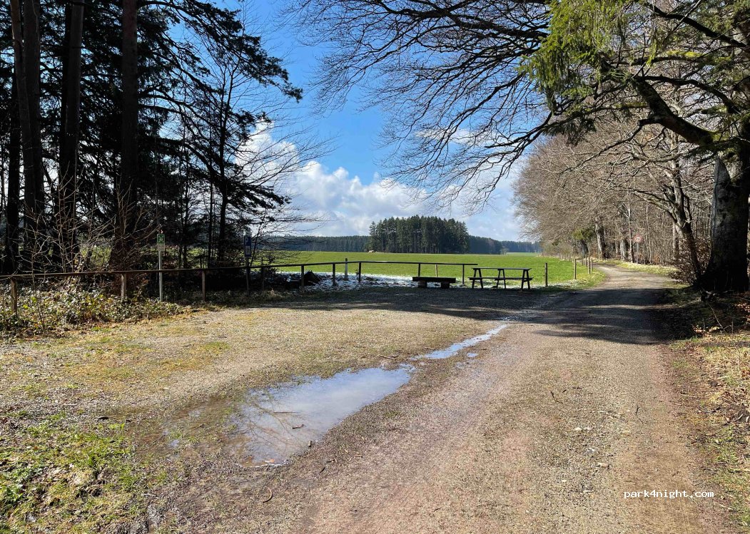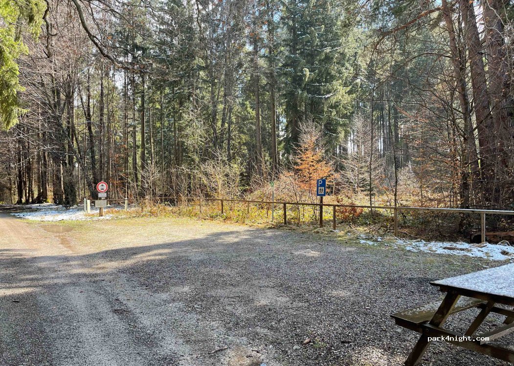 Das Parken ist hier erlaubt, jedoch ist das Übernachten in Campingfahrzeugen ausdrücklich verboten. Das Verbot wird von der Forstverwaltung Landsberg am Lech engmaschig überwacht.