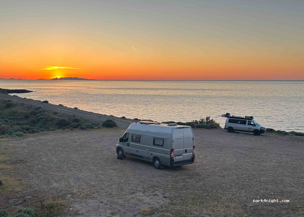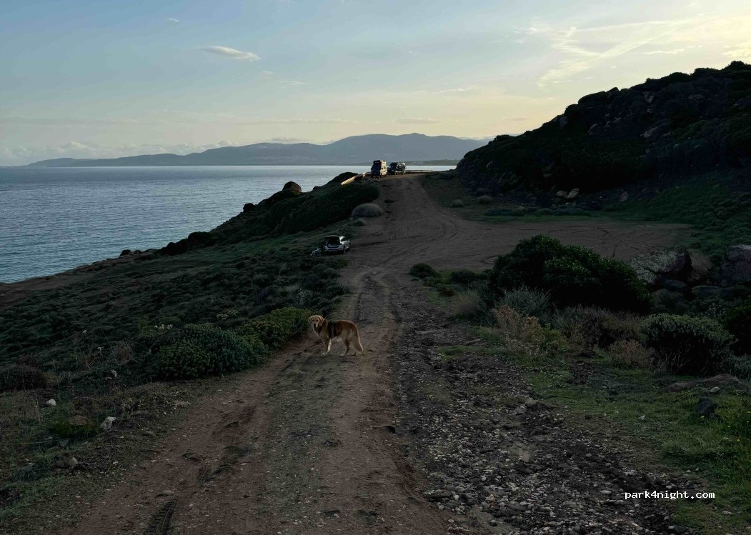 one of the best spots in Sardinia. we've spent here 2 nights. no other campers, just bicycles and trekkers and a few cars passing by during the day. super quiet at night and stunning panorama. the path to get here is a bit narrow but even a motorhome can pass. a little bumpy. there are two areas to park, I recommend the lower one. you can walk down to the rocky beach (watch out for sea urchins).