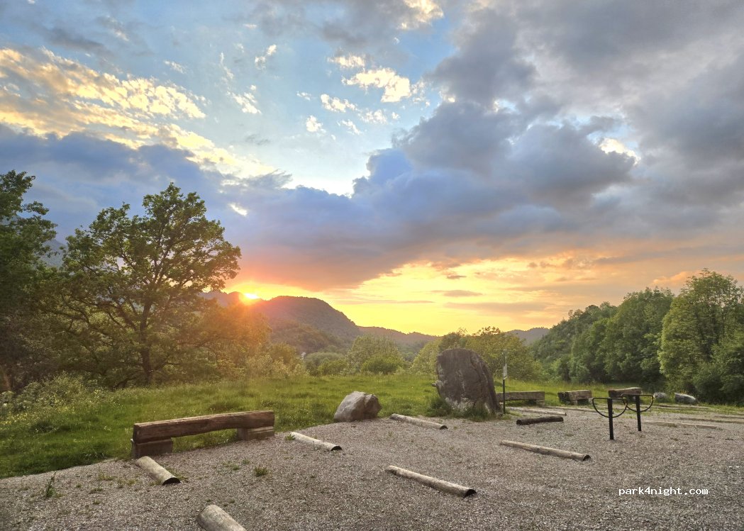 Endroit sympa mais vraiment très fréquenté tout au long de la journée même au mois de mars. Et pas très nature, les zones herbeuses visibles sur les premières photos ont été remplacées par du gravier (voir dernière photo). Parfait pour les départs de randonnée. J'y suis restée 2 nuits avec mon chien.