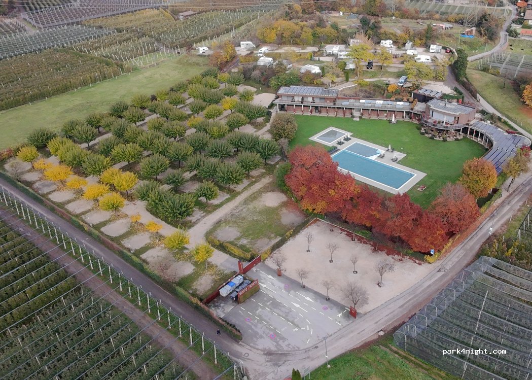 campeggio meraviglioso, tenuto benissimo, pulito. bagni spettacolari e molto caldi. il paese di tesimo in questa stagione e morto, ma con il pass si scende in autobus a Lana e si prosegue per merano che nel periodo dei mercatini e da vedere. il campeggio e circondato da coltivazioni di mele... deve essere bellissimo nella stagione della maturazione dei frutti. ci tornerò sicuramente