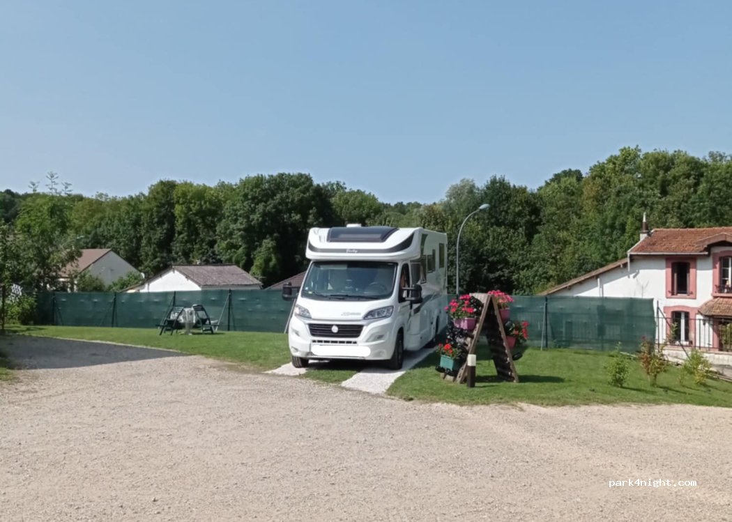 Very friendly hosts though only French speaking. Room for 2 vans up steep slope. Our 7.5m van was ok. Quiet residential surroundings. Quite nice champagne