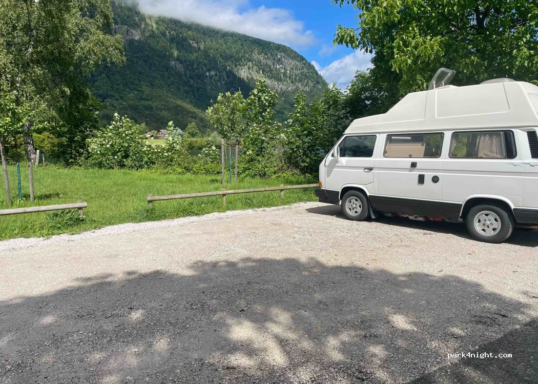Schöner Platz an einem See (Badesee vom Dorf) ideal für eine Nacht! 2 Möglichkeiten zum stehen bleiben, bei der Zufahrt ist links ein Platz zum Parken, davor eine schöne Wiese mit Seezugang, wenn man weiter fährt kommt man zu einem Schotterplatz auch am See mit bisschen mehr Platz! Hunde dürfen außerhalb der saison baden, sehr klares wasser! Autobahn hört man etwas aber nicht störend.