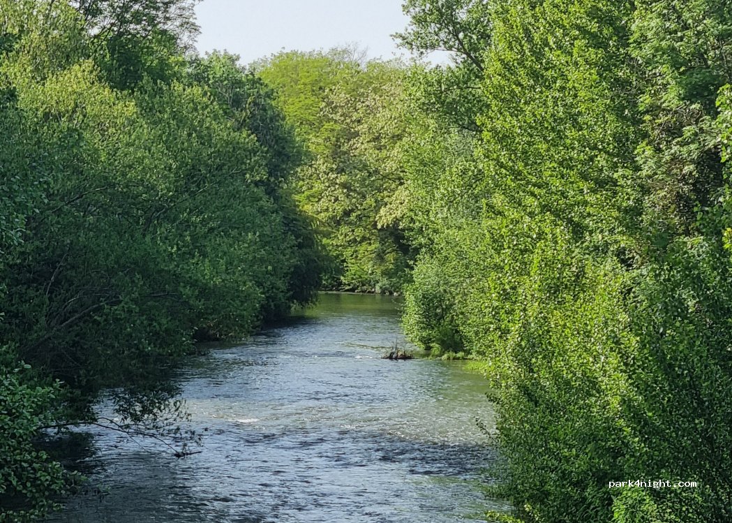 Parking agréable au bord de riviere A proximité de l autre côté du pont aire de jeux très sympa, jolie balade le long de la rivière. C est calme, gratuit et joli