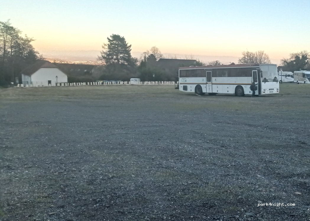 super parking, bien adapté aux gros gabarits. Majoritairement en pente, mais on peut trouver des endroits plats, sinon, avec de bonnes cales, ça passe. Super balades à faire.