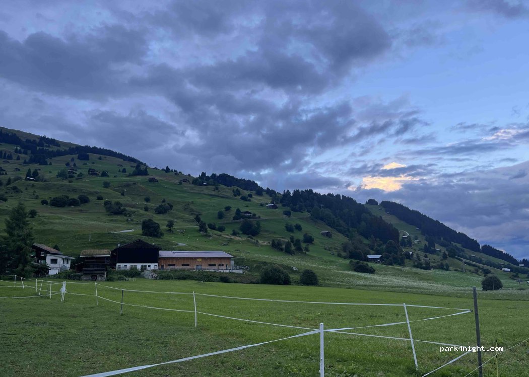 We were greeted heartily by farmer / host Bernard Muoth and found it a very nice place to stay on the farm with a good view. Free to stand on the grass or concrete. Toilet in the stable where in a separate space you can also do the dishes. Recommended for a simple, quiet and authentic experience.