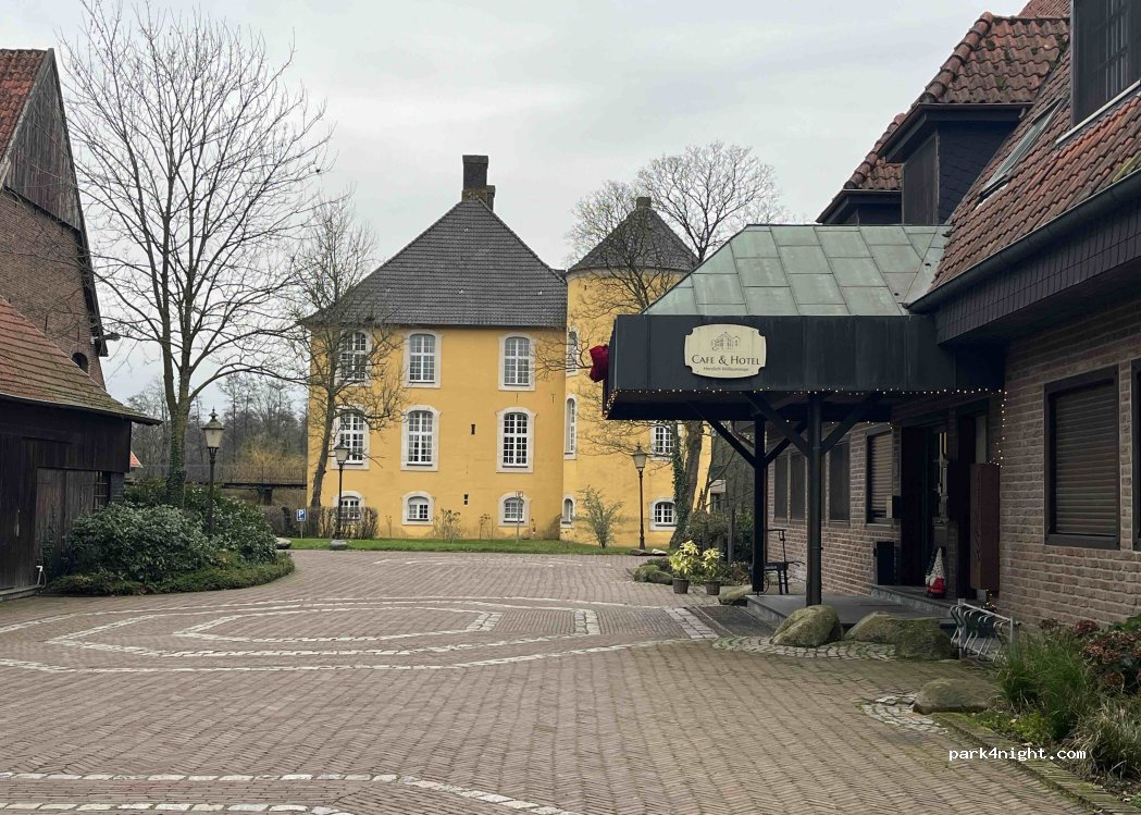 Aparcamiento del castillo de Diepenbrock. El restaurante y hotel Schloss Diepenbrock estuvo cerrado durante mucho tiempo y actualmente se está renovando. Apertura prevista para la primavera de 2022. Actualmente, el estacionamiento se utiliza principalmente como almacén de madera. El propietario permite pasar la noche de pie, pero le gustaría que se lo pidiéramos con antelación.