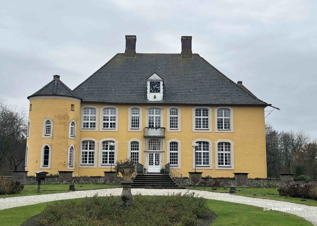 Parking du château de Diepenbrock. Le restaurant et hôtel Schloss Diepenbrock a longtemps été fermé et est actuellement en cours de rénovation. Ouverture prévue au printemps 2022. Le parking est actuellement utilisé en grande partie comme abri à bois. Le propriétaire permet de passer la nuit debout, mais aimerait être demandé à l'avance.