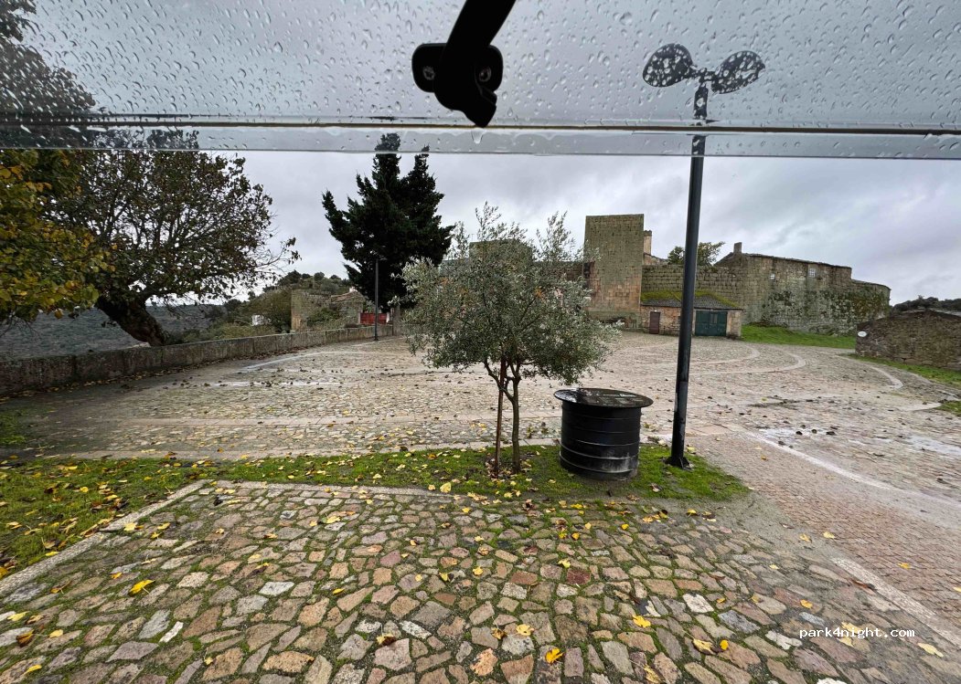 Merci à la municipalité de ce tout petit village de 100 habitants, de mettre à disposition cette aire. 2 vraies places en bas la 3 ème étant réservée à la vidange. MERCI DE NE PAS Y STATIONNER. Pour vidanger les eaux grises, il faut absolument un tuyau qui va du véhicule au déversoir. Quelques places aussi en haut à gauche du porche . Le village vaut le détour si on aime les vieilles pierres et tout en haut les ruines du château du XIIe siècle. La vue est impressionnante. À part un tout petit bar il n’y a pas de commerce, c’est désert. Le soir, les rues sont éclairées. Le GR 22 passe par le village et on peut descendre à la rivière Coa à pied, environ 6,5 km aller-retour et au retour ça monte pratiquement tout le trajet. La petite bergère avec ses quelques chèvres, passe plusieurs fois par jour, près du stationnement, c’est très sympa même si cela fait aboyer notre chien. Une dame âgée du village passe le soir vous proposer sa production, tomates, oignons, ail, poivrons, haricots secs, fromages et confiture. C’est assez cher. Nous avons cependant jouer le jeu et acheté plusieurs choses. Nous sommes restés 2 nuits , et avons très bien dormi dans le calme et la quiétude. Je recommande vivement