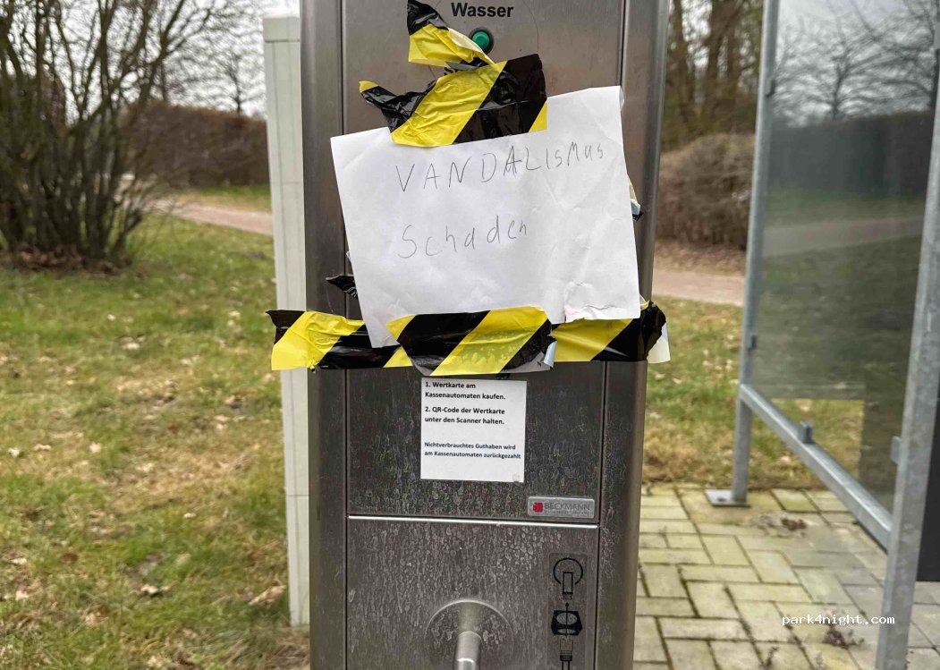 Mittlerweile sehr ungepflegt, teilweise wachsen kleine Eichen auf der Stellplatzfläche, Gräser und Unkraut überall. Die Grünstreifen rund herum sind verwildert. Viel altes Laub was vermodert und Unkraut wachsen lässt. Kartenzahlung defekt. Nur mit Bargeld bezahlbar; der Touristeninfo in der Stadt ist das bekannt. "Dann müssen sie bar bezahlen". Können sie Geld wechseln? "Nein" :-(