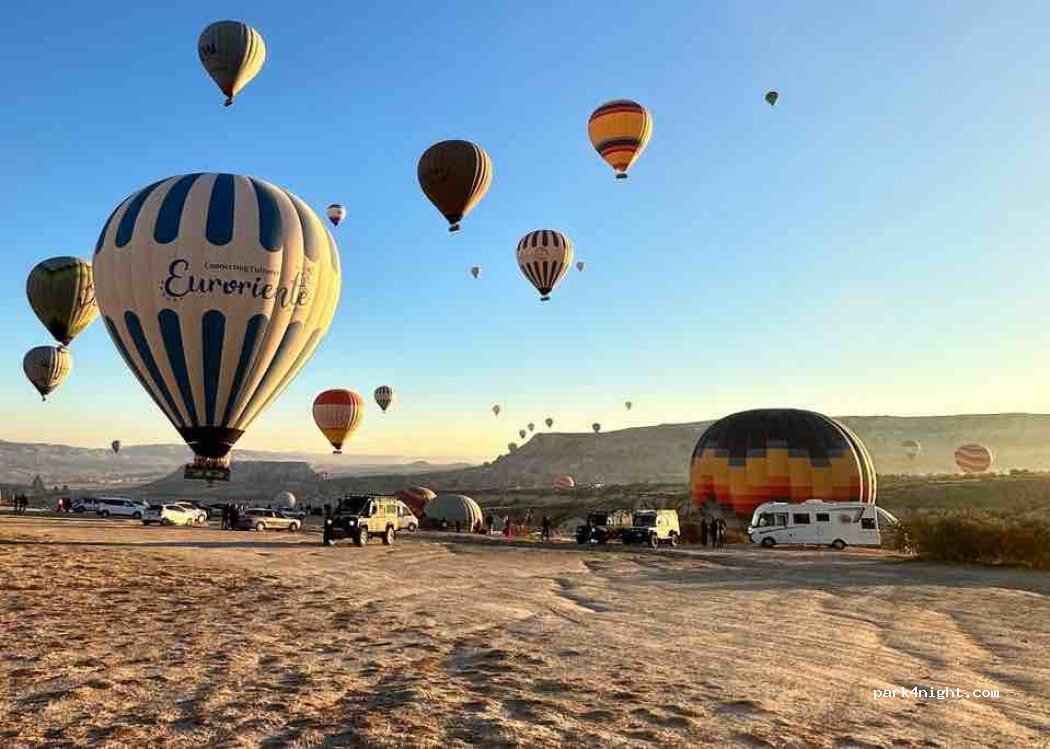 Perfekter Ort! Bei uns hat die Windrichtung gepasst und die Ballons sind direkt neben uns gestartet und gelandet. Im Winter Zufahrt teils matschig, aber machbar - auch mit normalem Fiat Ducato L2H2. Man kann direkt am Abgrund überm Love Valley stehen. Teilweise wird eine Gebühr erhoben (80TL für Camper)