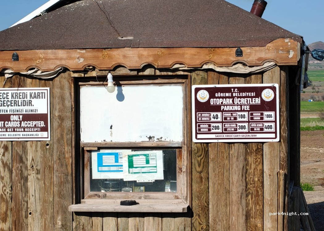 a little more peaceful and only a very short walk to see love valleys main love rocks. 50TL(2.5€) entry/parking for camping car/MH (called Karavan in Türkiye)