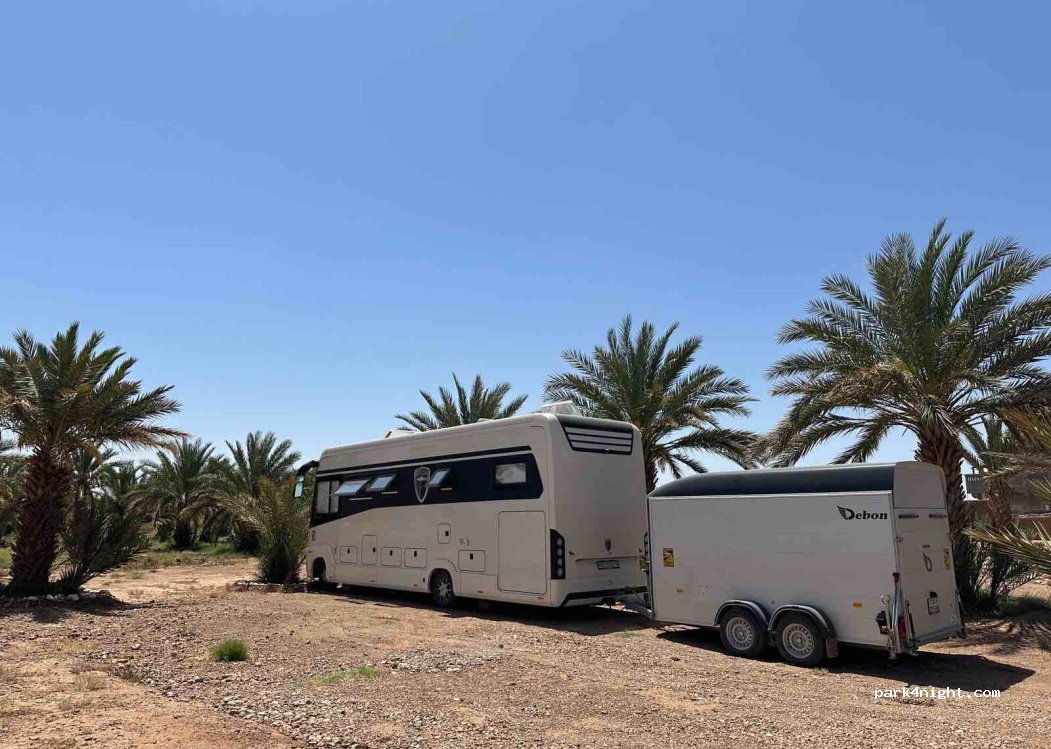 La Palmeraie campsite, calm and pleasant in an old garden. Well signposted from the national 9 at the south exit of Tagounite. Simple but clean facilities. The palms are still too young to provide effective shade. Palm grove nearby. Friendly welcome.