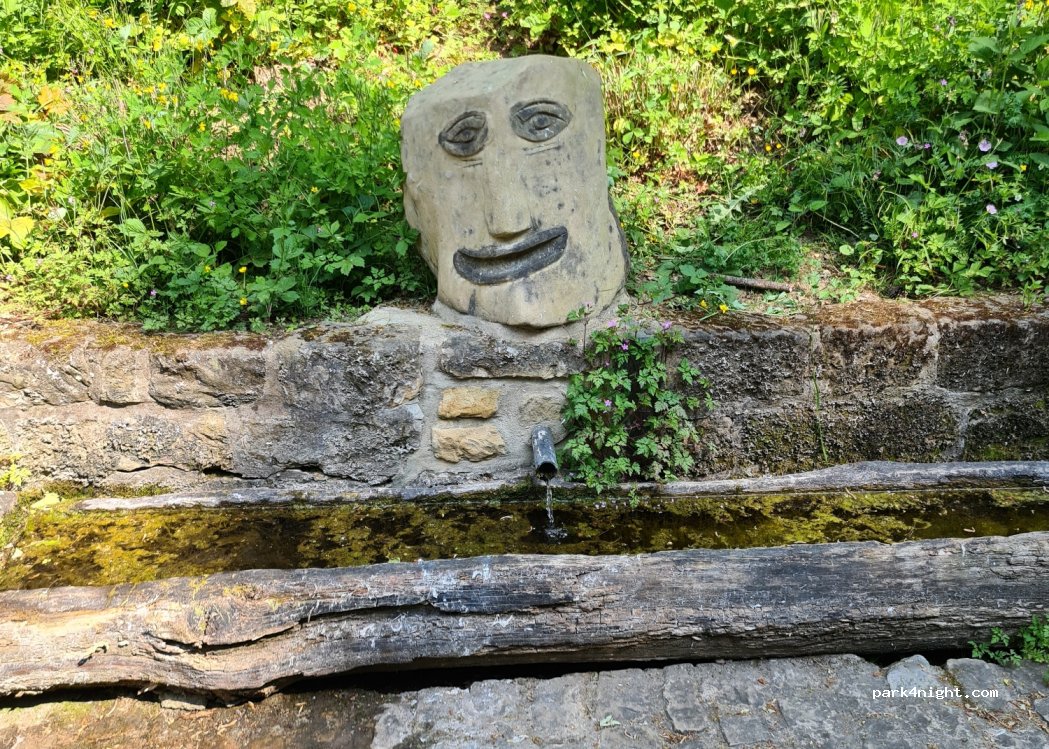 Fijne, rustige plek en meteen aan wandelroutes. water kun je nemen bij het standbeeld. maar alleen met flesjes of zo.