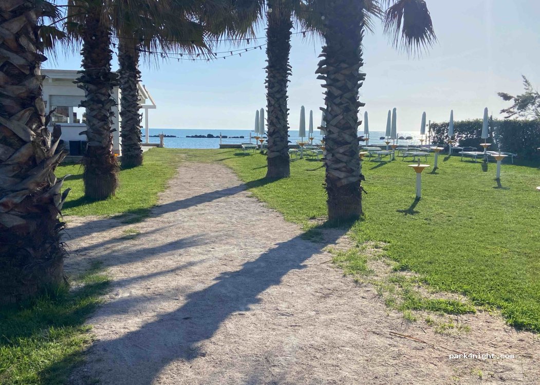 Magalipè is a motorhome parking area with direct access to the beach located in Cologna Spiaggia di Roseto degli Abruzzi. Inside there are 6x9m pitches (each with private sink and electricity connection), a service area with four hot showers and bathrooms for men / women, a solarium on a grassy area with parasols and deckchairs, a bar with a view of the sea.