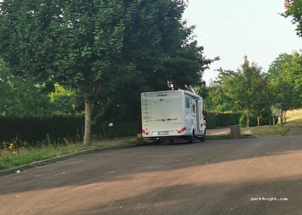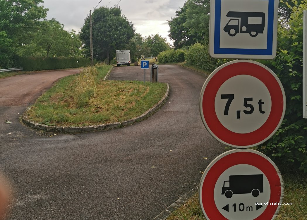 Aangewezen parkeerplaats met niets. zelfs geen vuilnisbakken of een stoel. niets zegt dat het verboden is om te overnachten. Dus raden zou geen probleem moeten zijn. maar ligt direct aan de weg, wat niet druk is