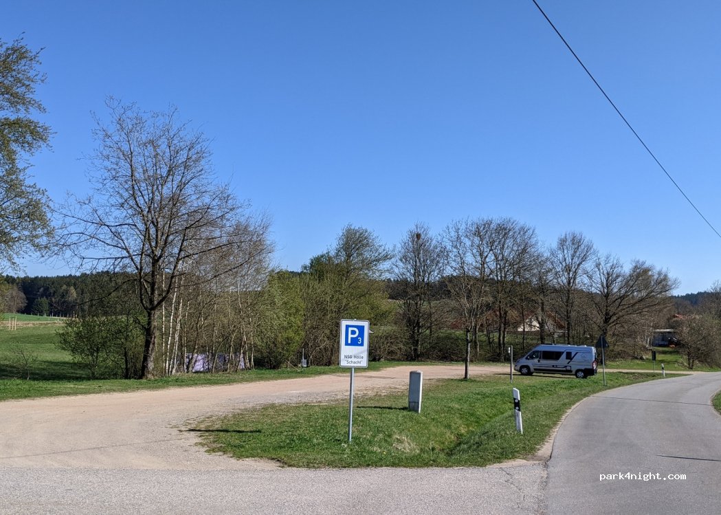 Mit Aussicht und schön in der Abendsonne. Sehr ruhig da die Straße praktisch unbefahren ist. Bezeichnet als P3 NSG Hölle. Viel schöner als P2 in Postfelden. Beschildert zum Rundweg durch das Naturschutzgebiet Hölle