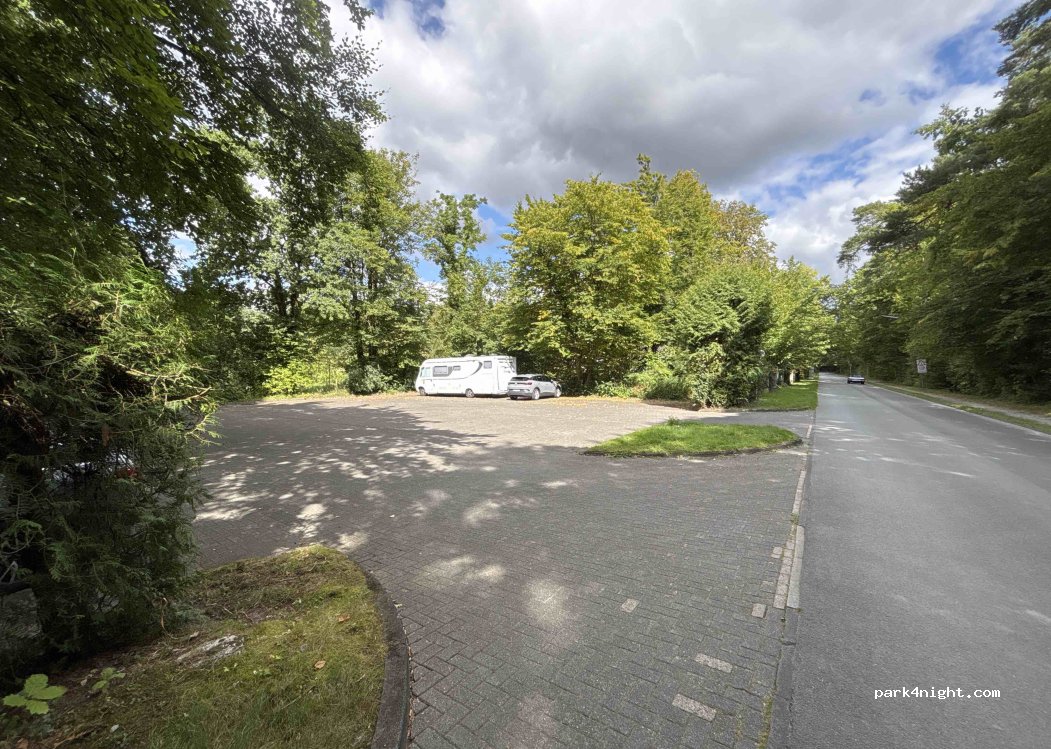 Leicht abschüssiger Park-Platz, keine Beschränkungsschilder, im Sommer auch schön schattig. Tagsüber ist es Treffpunkt/Ausgangspunkt für Spaziergänger und Sportler, Nachts kaum Durchgangsverkehr und sehr ruhig