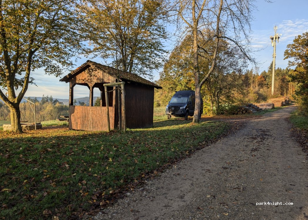 Absoluter Traumplatz mit Grillstelle und sensationeller Aussicht - sehr ruhig - Platz nur für ein Wohnmobil. Es ist kein Verbotsschild vorhanden - es handelt sich um einen öffentlichen Grillplatz der Gemeinde mit Schutzhütte.