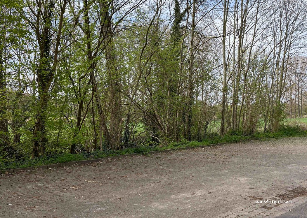 Total ruhig hier! Ein kleiner gepflasterter Parkplatz an einem kleinen Bach. Straße nur für Anlieger. Kostenlos, ohne Infrastruktur.