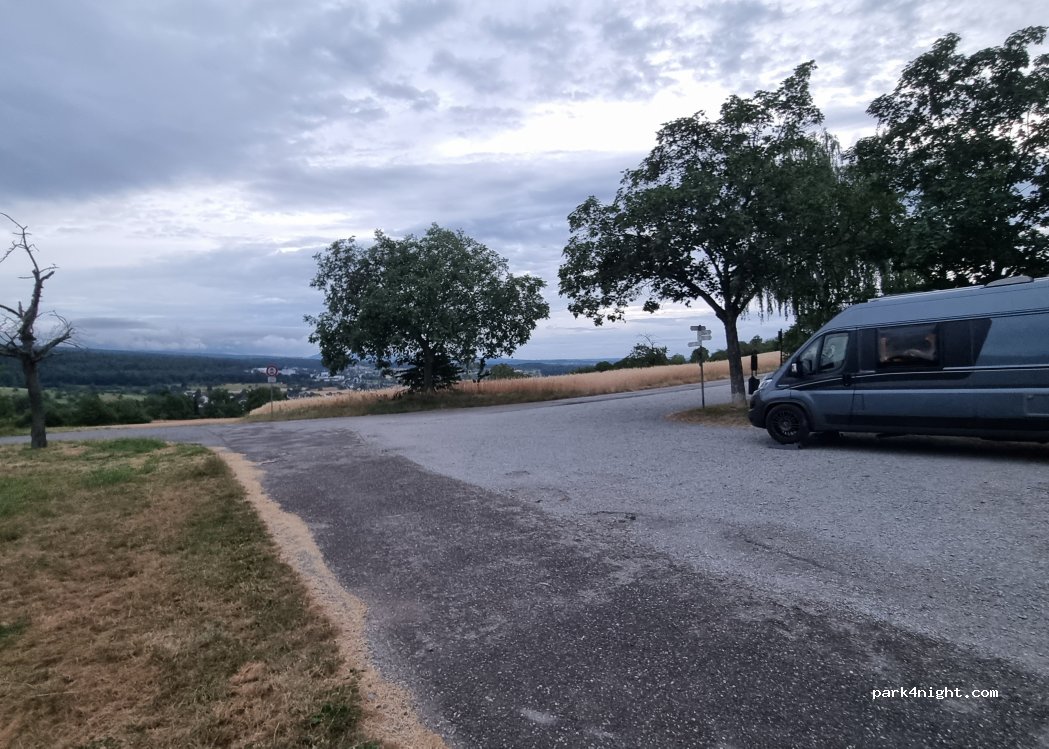 We spent a night here, lots of spaces to park ever so slightly slanted depending on where you park. Lots of green space around, nice view of the nearby town. Can be busy during the day and into the evening but most cars left by 10pm, very quiet during the night.