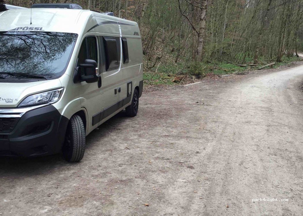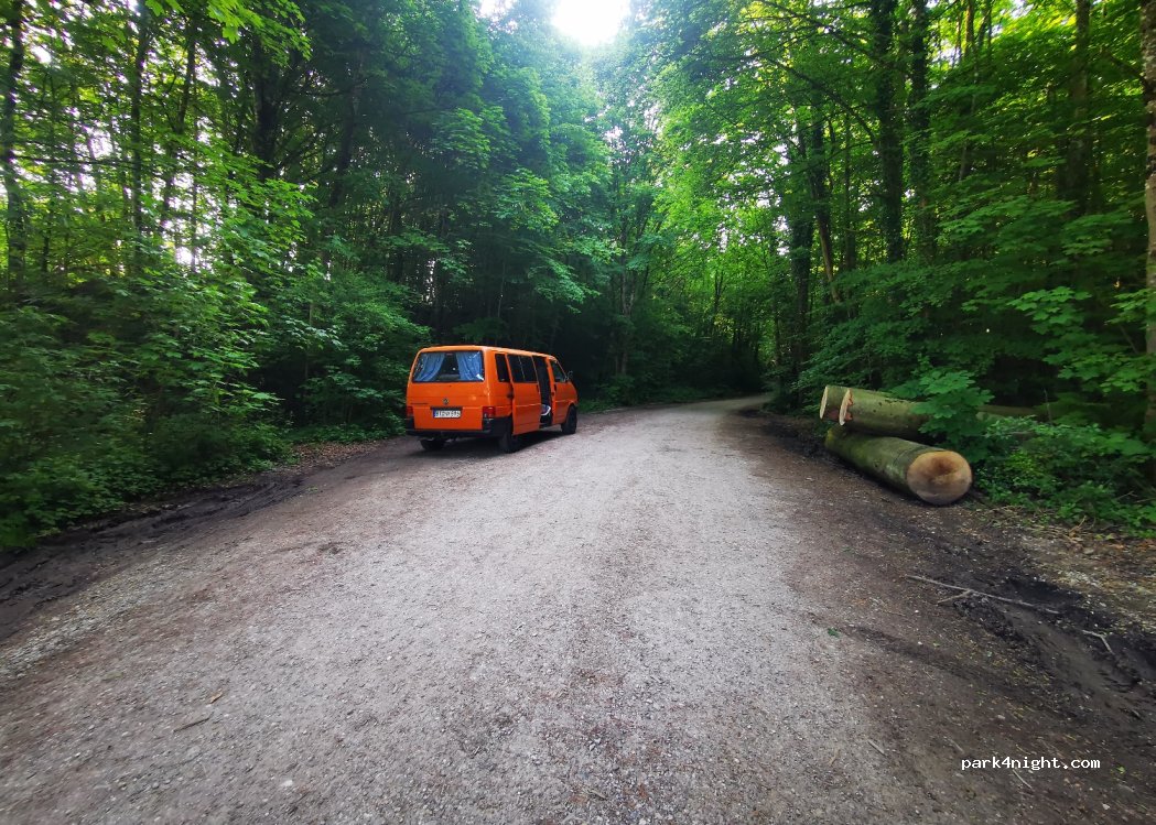 Free parking and overnight accommodation in the forest along a gravel path. Space for about 2 mobile homes.