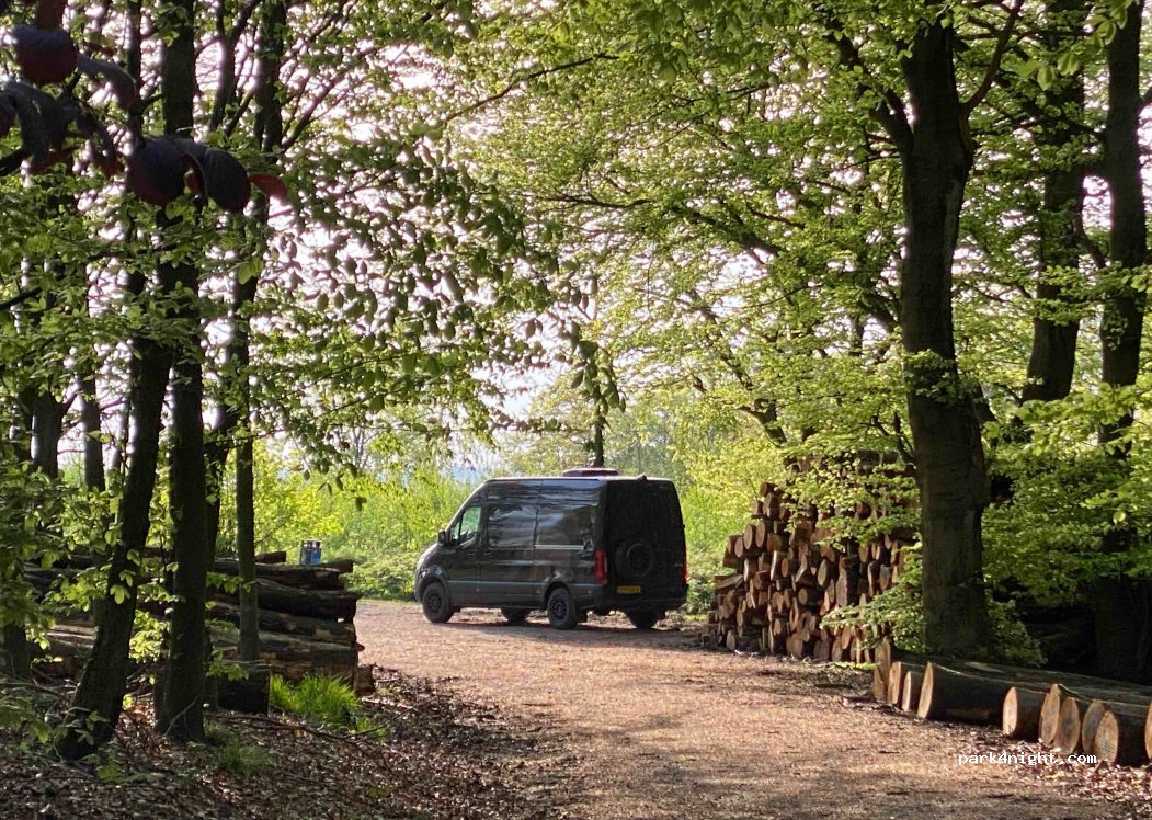Mooie parkeerplaats in het bos en mooie uitzichten. Niet overal vlak. Langs een weg, maar die is rustig. Kleine vuilnisbak aanwezig. Wandelgebied.