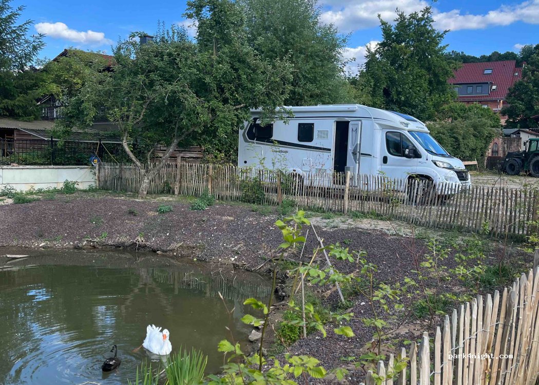 Sehr schöner kleiner Stellplatz mit Spielplatz kleinem Teich mit Enten Gänse und Hühnern die nicht viel vom Zaun halten… :-D Strom und Wasser ist vorhanden. Wenn wir in der Nähe sind kommen wir wieder !
