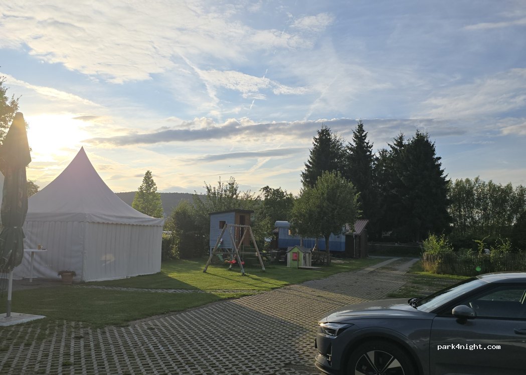 Schöner ruhiger Stellplatz im Hinterhof eines Gasthauses. Begleitet von Hühnern und Enten. Liebevoll angelegtes Areal. Sehr nette Gastleute, sehr leckeres Essen. 11€/Nacht. Zu Öffnungszeiten können die Toiletten mitbenutzt werden. Wasser und Strom vorhanden. Dem Stellplatz-Schild an der Straße folgen. Kommen gerne wieder.