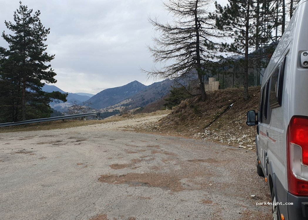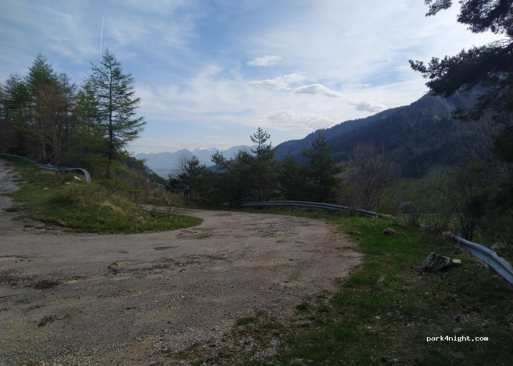 easy access, great view, a bit tilted. sadly only suitable if you arrive late and leave early, as it's nothing more than a wide section of the road before the hairpin turn.