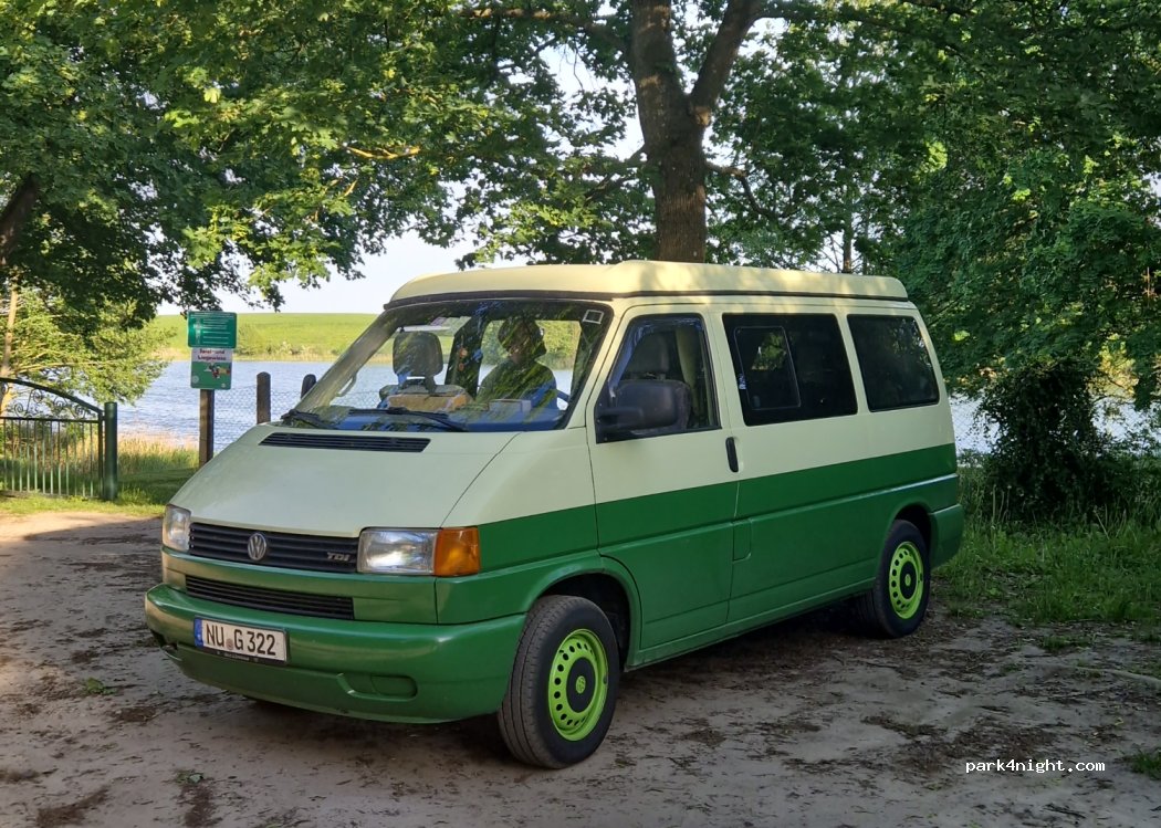 Auf dem gezeigten Platz ist das Campen verboten. Vor dem Zaun an der Badestelle können 1 - 2 kleine Fz. stehen. Die Durchfahrt für die Landwirtschaft sollte nicht behindert werden! Ruhiger Platz für eine Nacht. Wochenende früh auch Angler unterwegs.