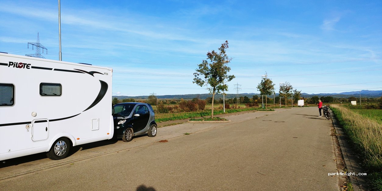 Parking bays for overnight stays, at the end of an industrial area, very quiet and in nature.