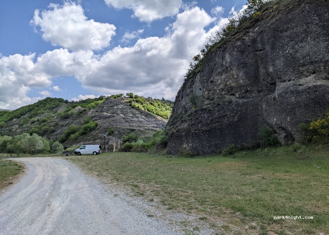 We easily reached this place during the night on our 6m MH. We spent a quiet night; only in the morning some local tourists visited the old bridge nearby. Only an old, abandoned building ruins the scenery.