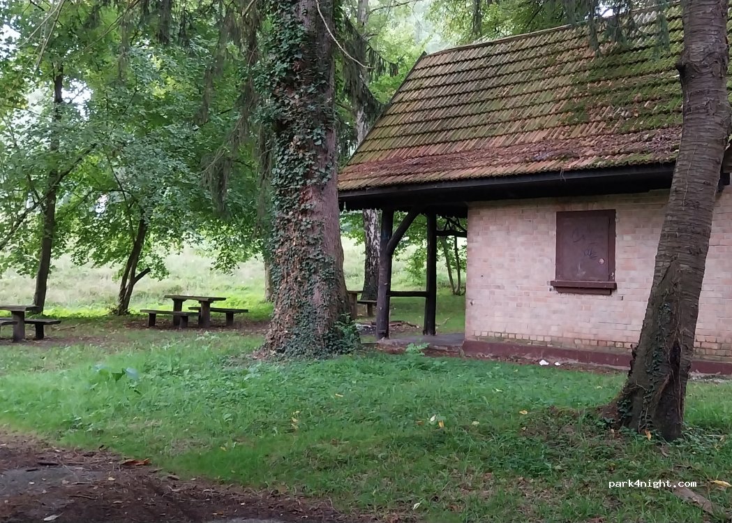 Scherpfer houses - barbecue area of the city of Wörth. Many tables and benches. Long drive up a narrow road
