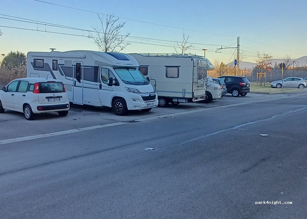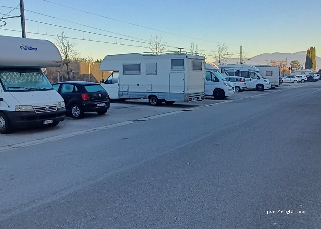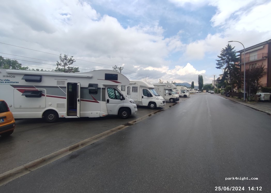 Strada con parcheggi in battaglia libera. CC fino a 6,5 vedere 7 m possono adattarsi. Molti posti. Già 4CC quando siamo arrivati. 15min a piedi dal centro storico. Nessun servizio