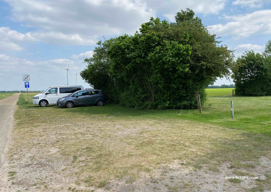 Sehr schöner Parkplatz kurz außerhalb des Dorfs direkt an einem wenig besuchten Park (mit Grillhütte und Spielplatz). Toller Weitblick über die Felder. Einige freundliche Hundebesitzer unterwegs. Mülleimer vorhanden. Guter Ausgangspunkt für Radtouren. Wir sind 2 Nächte geblieben und haben uns sehr wohl gefühlt!
