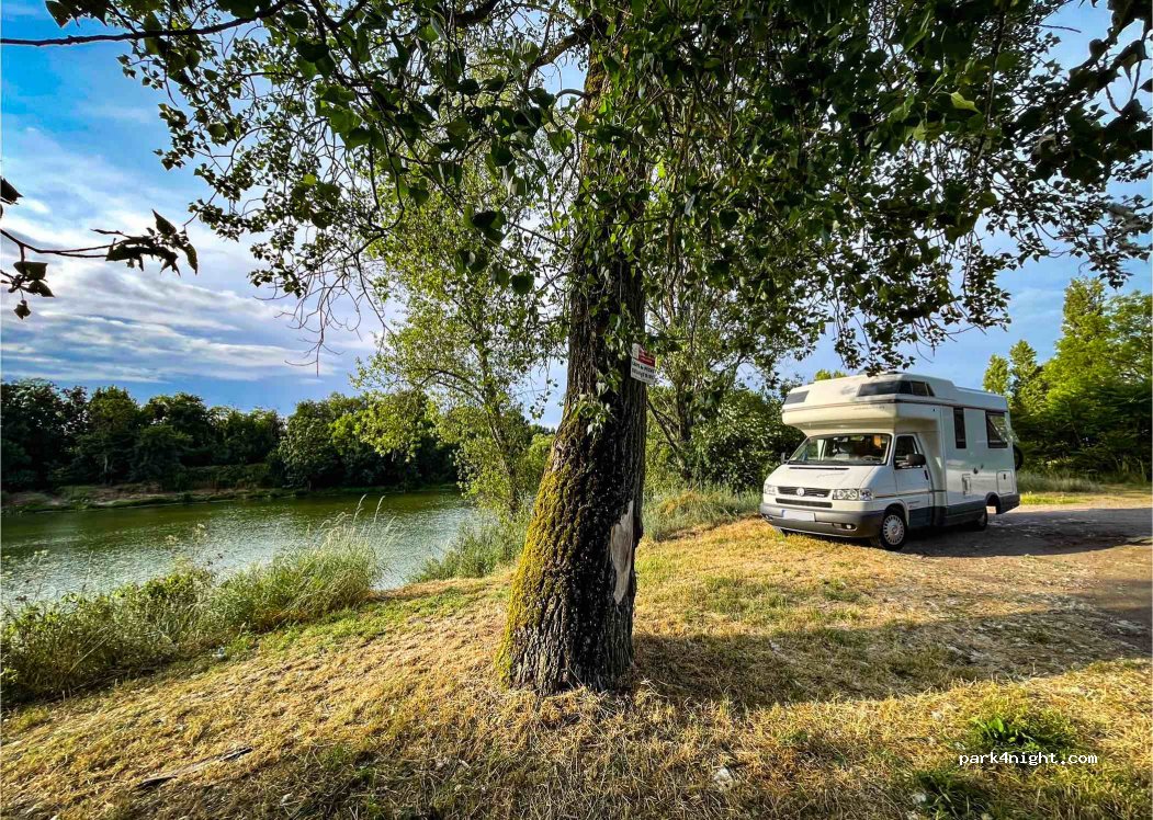 Coin très calme au bord de l’eau. Nous avons passé une nuit sans être dérangées, le bruit des canards et des oiseaux au réveil c’était très tranquille. Plusieurs emplacements possibles. Quelques cyclistes et promeneurs le soir et le matin