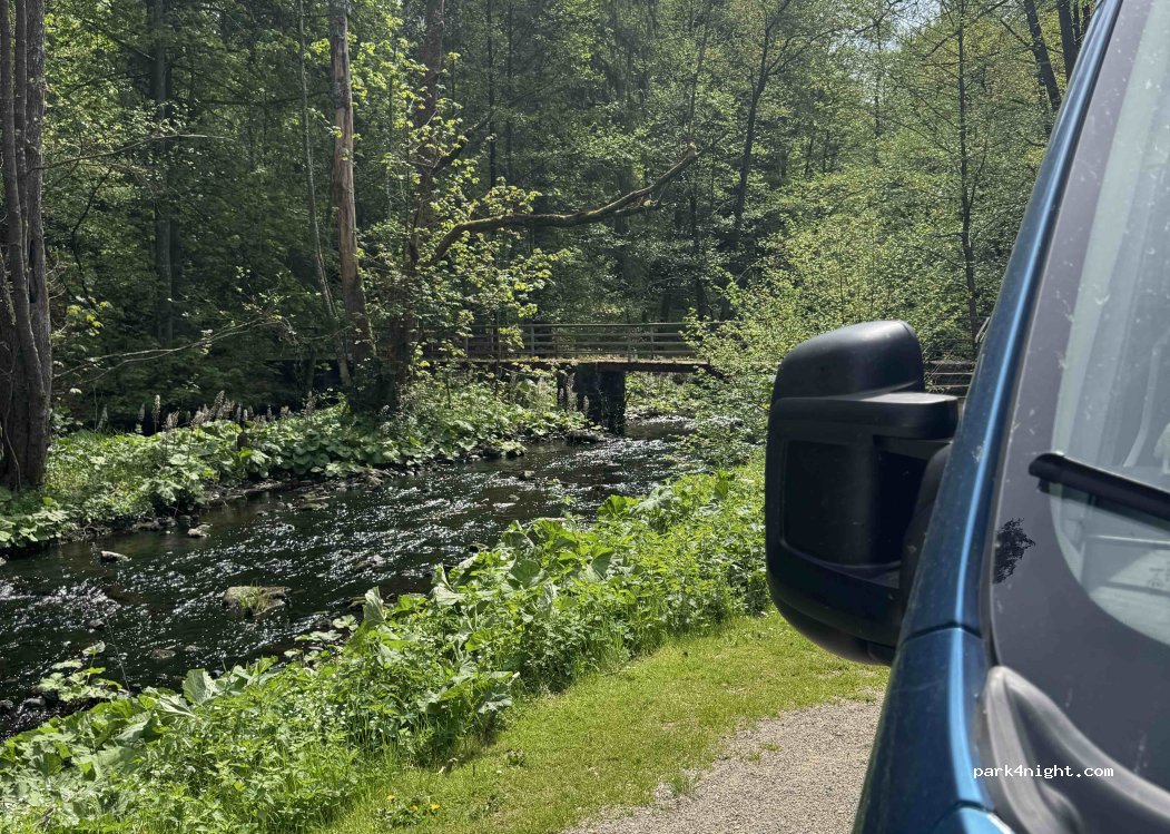 Lovely site right in the forest and close to the beautiful town of Monschau. Rustic, but facilities were clean. You can order bread for the next day and they have a small shop and sell pizzas. There is a nice walking route right from the site through the forest. Only small thing was that the grey water drain wasn’t very obvious (on the way out of the site near the gate)