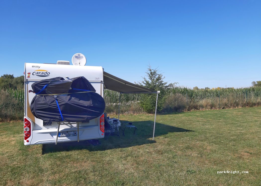 The fenced property is surrounded by two lakes in the heart of the Elbe floodplains. The Elbe Cycle Path and the Elbe River are less than 1,000 meters away. Those seeking relaxation will find plenty of space and peace here. Whether cycling, hiking, fishing, or cultural activities, our guests can discover something new in the immediate vicinity. Barbecues are permitted on the property, and we provide a fire pit for a cozy evening. A gas inspection of your caravan can now also be booked on-site on weekends.
