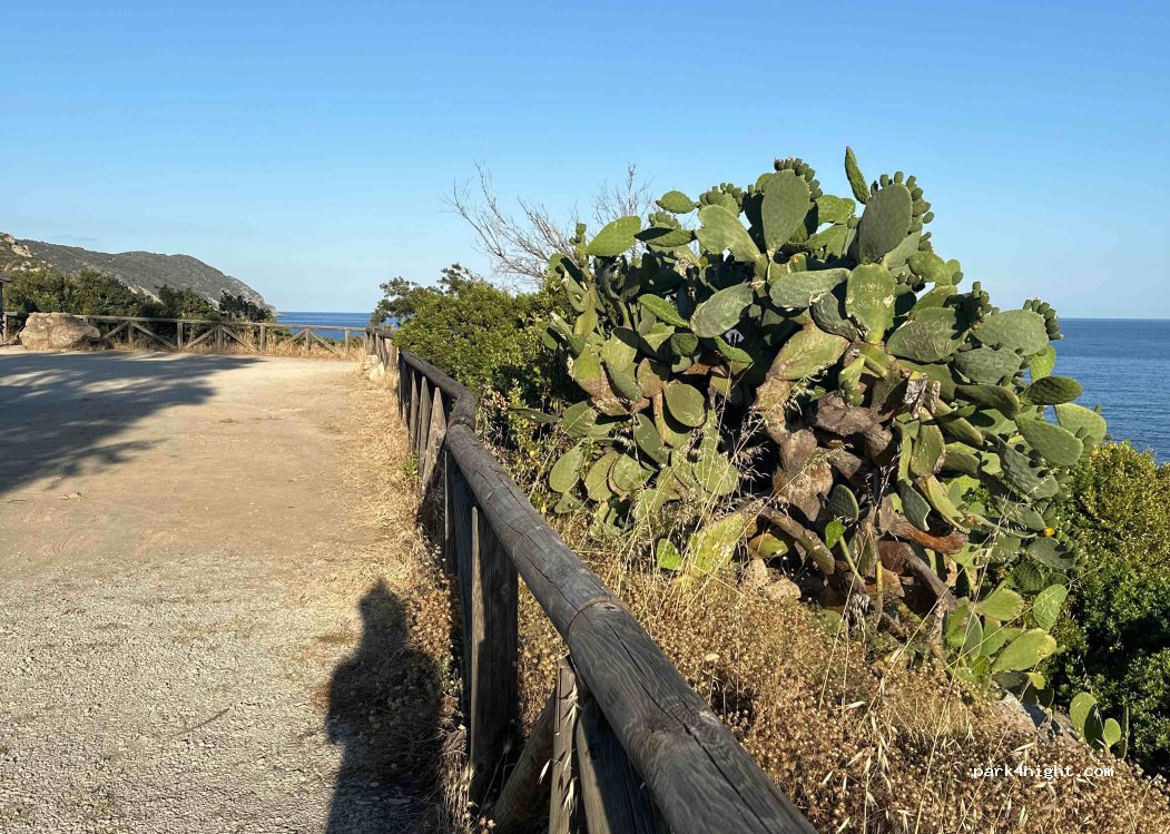 Haben hier eine Nacht verbracht, schöner Ausblick auf das Meer. Es gibt auch Picknicktische. Wir haben fast durchgeschlafen, um 5 Uhr haben uns mehrere Wildschweine geweckt. Den Autolärm haben wir fast nicht mitbekommen, vermutlich waren wir zu K.O. oder die Straße ist tatsächlich ziemlich wenig befahren in der Nacht. Strandbesucher parken hier erst nach 10 Uhr in der Früh.
