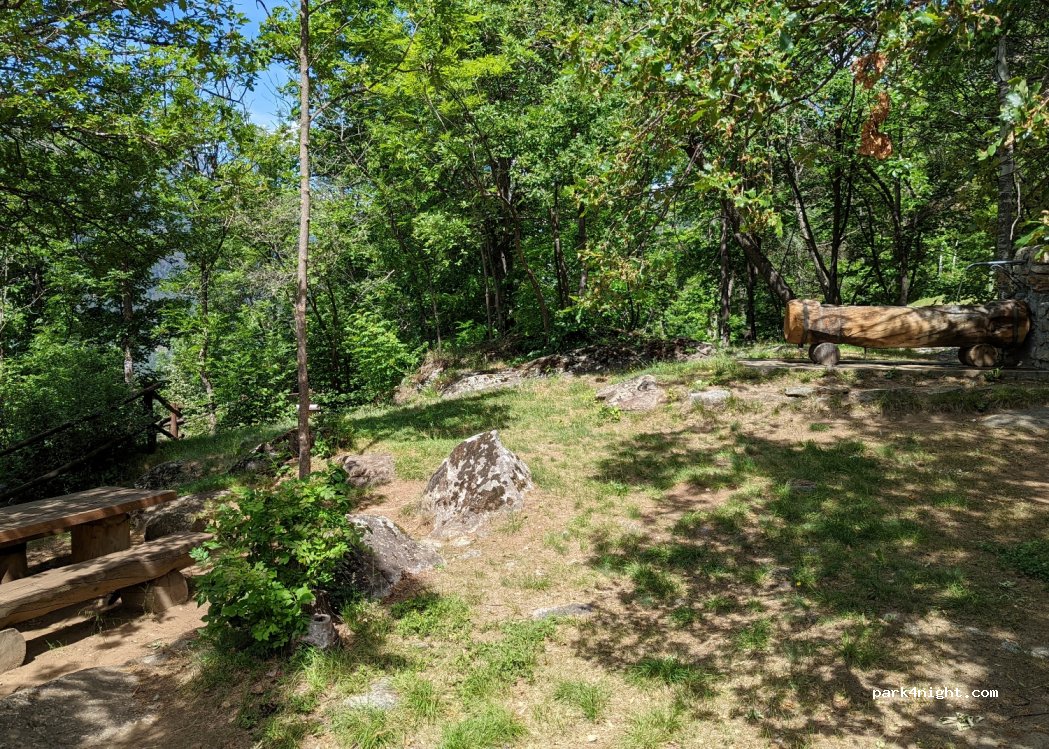 Endroit bien entretenu et calme où j’ai passé une nuit. Il y a plusieurs stations de grillades, une fontaine et même des toilettes. Le jour de mon passage, celui dédié aux hommes était ouvert. Parking avec une légère pente (mieux si vous avez des cales). Route d’accès raide et peu large.