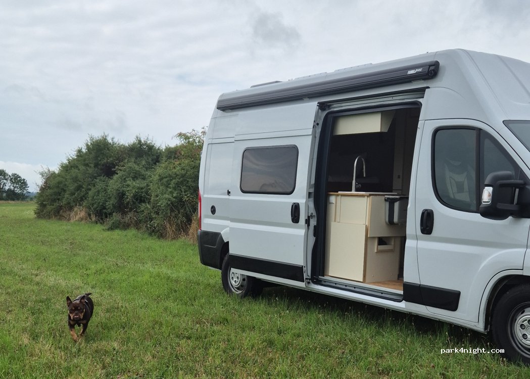 Sympa pour une nuit, vue sympa mais sans plus, terrain en pente attention, ok pour un van