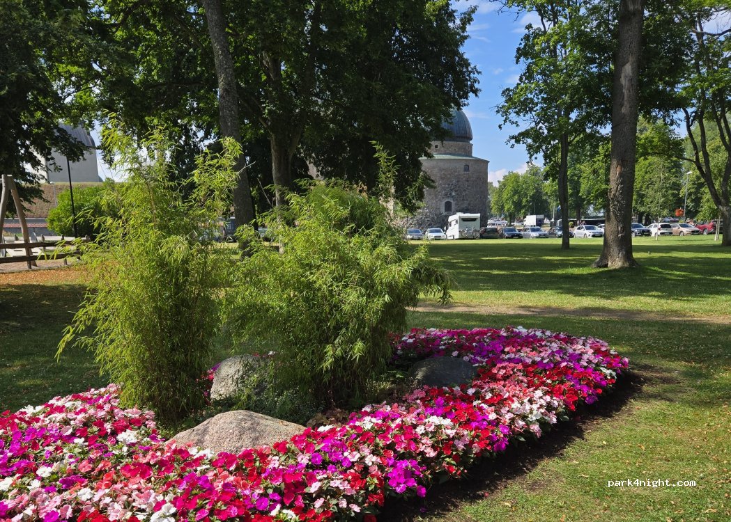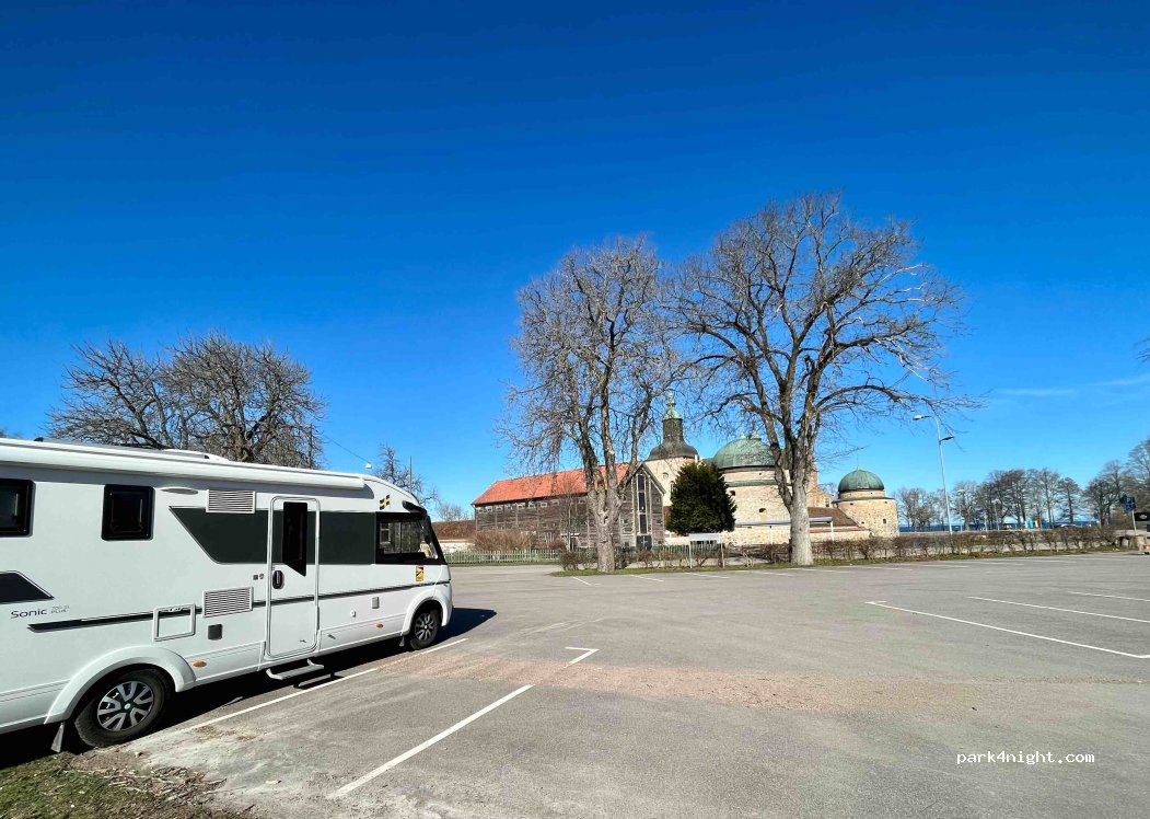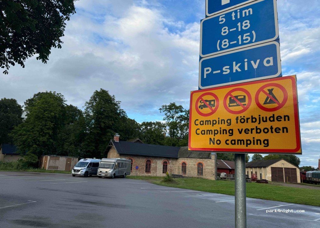 Übernachtung verboten. Parken am Schloss, tagsüber von 8.00 bis 18.00 Uhr mit Parkscheibe für maximal 5 Stunden Parken. So frei. Wir haben dort unter vielen schwedischen Campern übernachtet.