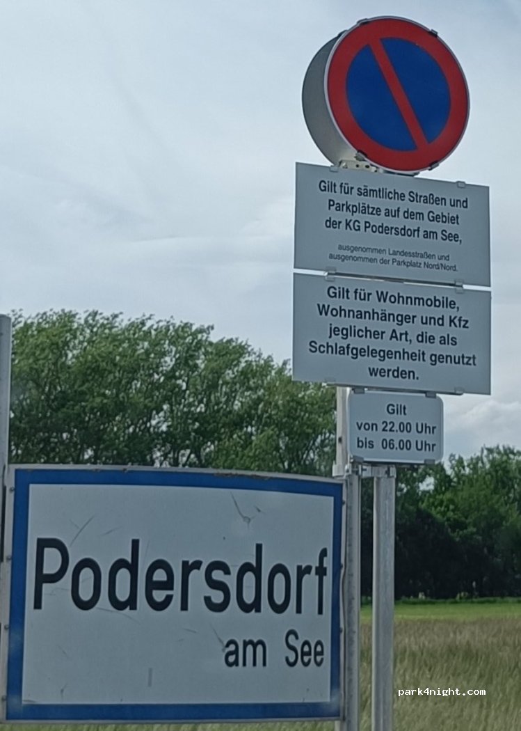 Garé juste à côté de l'entrée du camping de la plage. Entrée gratuite à la plage uniquement à 19h. Les toilettes (très propres) peuvent être utilisées 24h/24 gratuitement. Poderdorf est plein de touristes