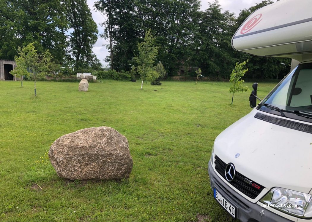 Ein ruhiger Grasplatz, mit Strom. Super herzliche Gastgeber, die 5 € gehen in die Vereinskasse des Waldschwimmbads. Einkaufen ( netto) in Großenwiehe. Oder ca 15km in Bredstedt. War mit Pickup und 5m Anhänger dort, von der richtigen Seite kommt man gut auf das Grundstück. Der Besitzer ist ab ca 17.00 Uhr erreichbar , aber der Schwiegervater hat mir sehr nett geholfen. Grüßle Bernd