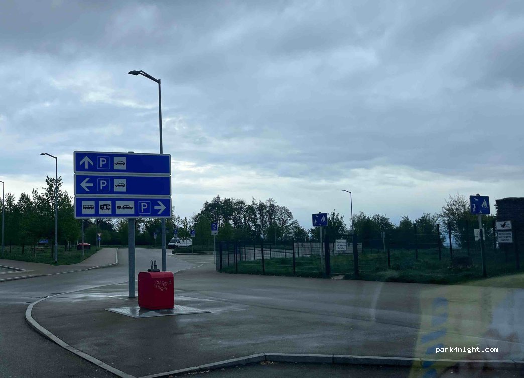 Designated mobile home parking spaces at the Köschinger Forst Ost service area, towards Nuremberg. The parking spaces are behind the rest house, separate from the truck parking spaces, making them very quiet. Hundreds of outdoor space behind the rest house.