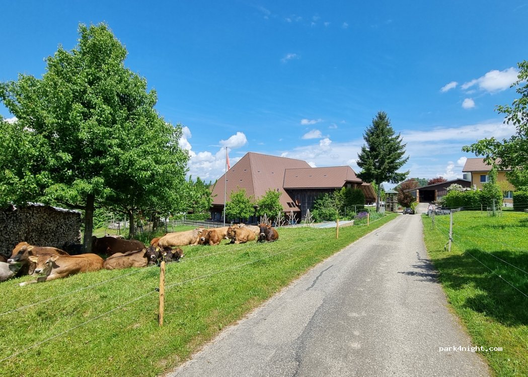 Place de parking sur une ferme biologique. Point de départ de belles randonnées et balades à vélo, par exemple sur l'Oberbühlchnubel ou Lueg avec une vue panoramique magnifique sur les Alpes et la chaîne du Jura, Mutzbachgraben avec cascade, vieille ville historique et château Burgdorf, Burgäschisee...