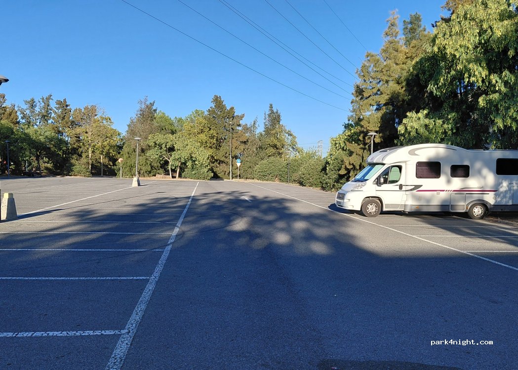 Grand parking à 1,5 km du centre. Nous y avons stationner pour visiter la ville sans y passer la nuit. Il nous a semblé rassurant et calme.