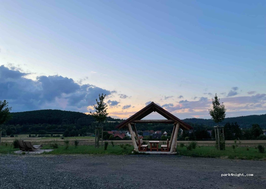 Ein ruhigen Platz in Dorfnähe an einer Kartoffelhalle (Kartoffelalm) genannt. Dahinter eine freie Fläche mit schönen Aussicht in das Werratal. Bezahlung im vertrauen in einen Briefkasten. Dazu ein Hofladen und Gaststätte diese hat leider nur Freitag - Sonntag geöffnet. Wasser und Strom vorhanden. Wer nicht entsorgen muss ist hier gut aufgehoben. Auch mit Längen über 8 m. Wir kommen gerne wieder.