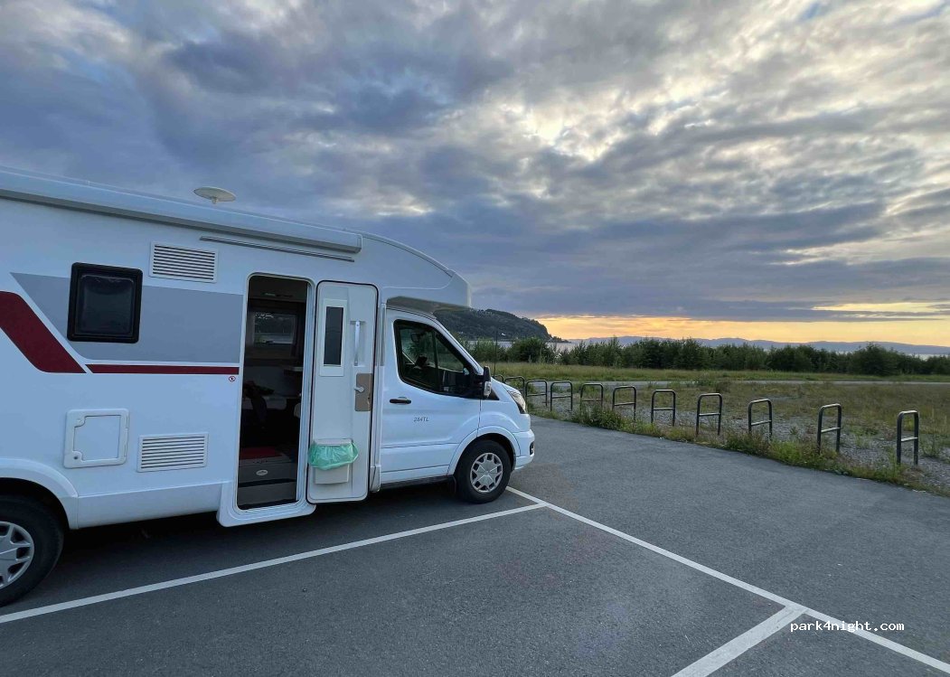 Good place for one night, calm, on asphalt unlike the other app place 2 km away other side of the village - in Hommelvik, which is on gravel and closed as a view, where the train is heard much loudly. Also, here is no sign prohibited for campers that is in the photos. It has probably been removed.