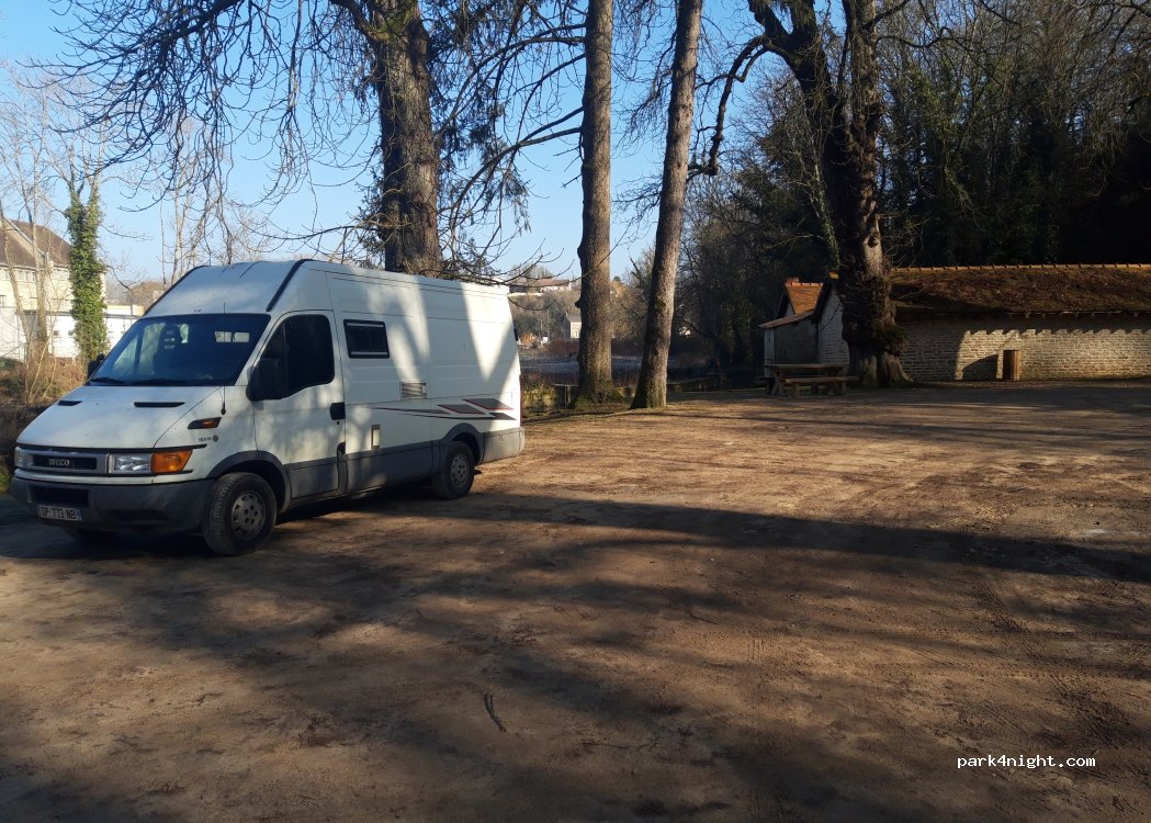 Parking source de la Douix au bord de la Seine. En journée quelques allées-venues, pour la nuit c'est calme. Pas de service. Pour l'accès, prendre en direction du camping, éviter de prendre l'indication à gauche, dans le village petite rue avec beaucoup de véhicules garés.
